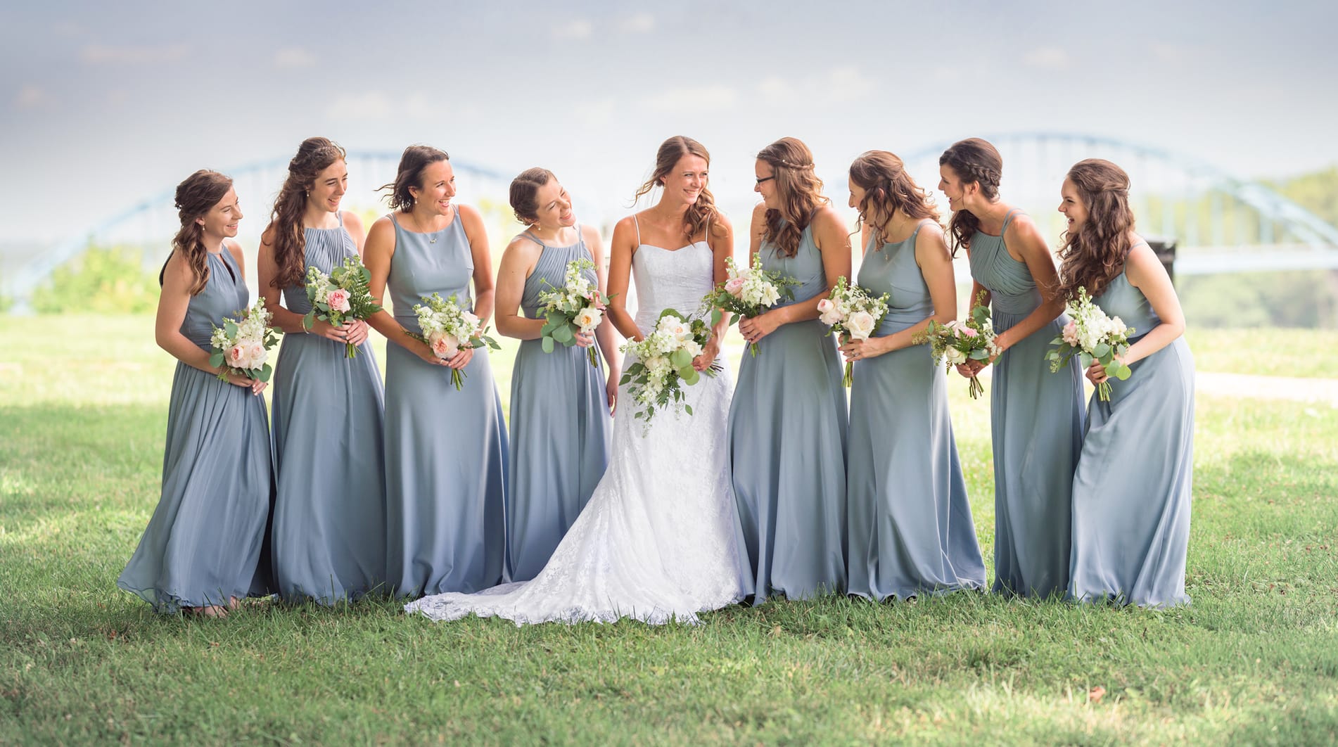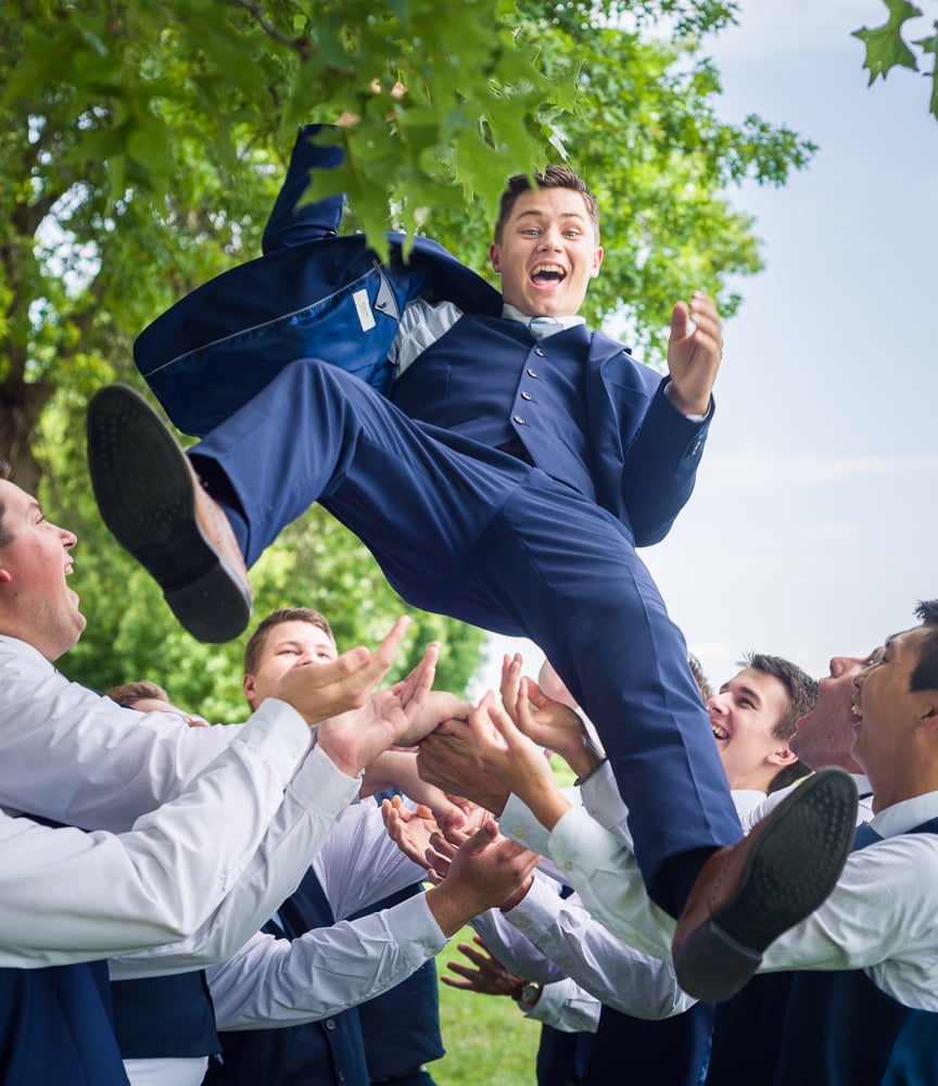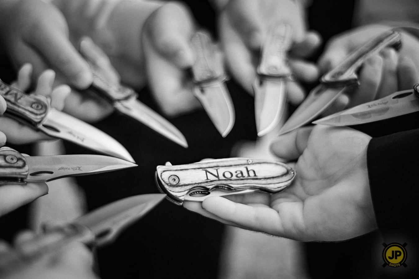 After that, we hopped over to the Riverfront Community Center to shoot everyone before the big event! We spent a good amount of time at that location throughout the day because outside of being a beautiful place for portraits; it was the spot where they got engaged. The riverfront has a beautiful walking path with lots to see. It also overlooks the Centennial Bridge and the Missouri River. The groomsmen were pretty fun to work with! Groomsmen gifts can be challenging, but Noah had a pretty creative idea: custom engraved pocket knives.